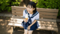 ソフトクリームが溶けて顔やスカートが汚れたJK